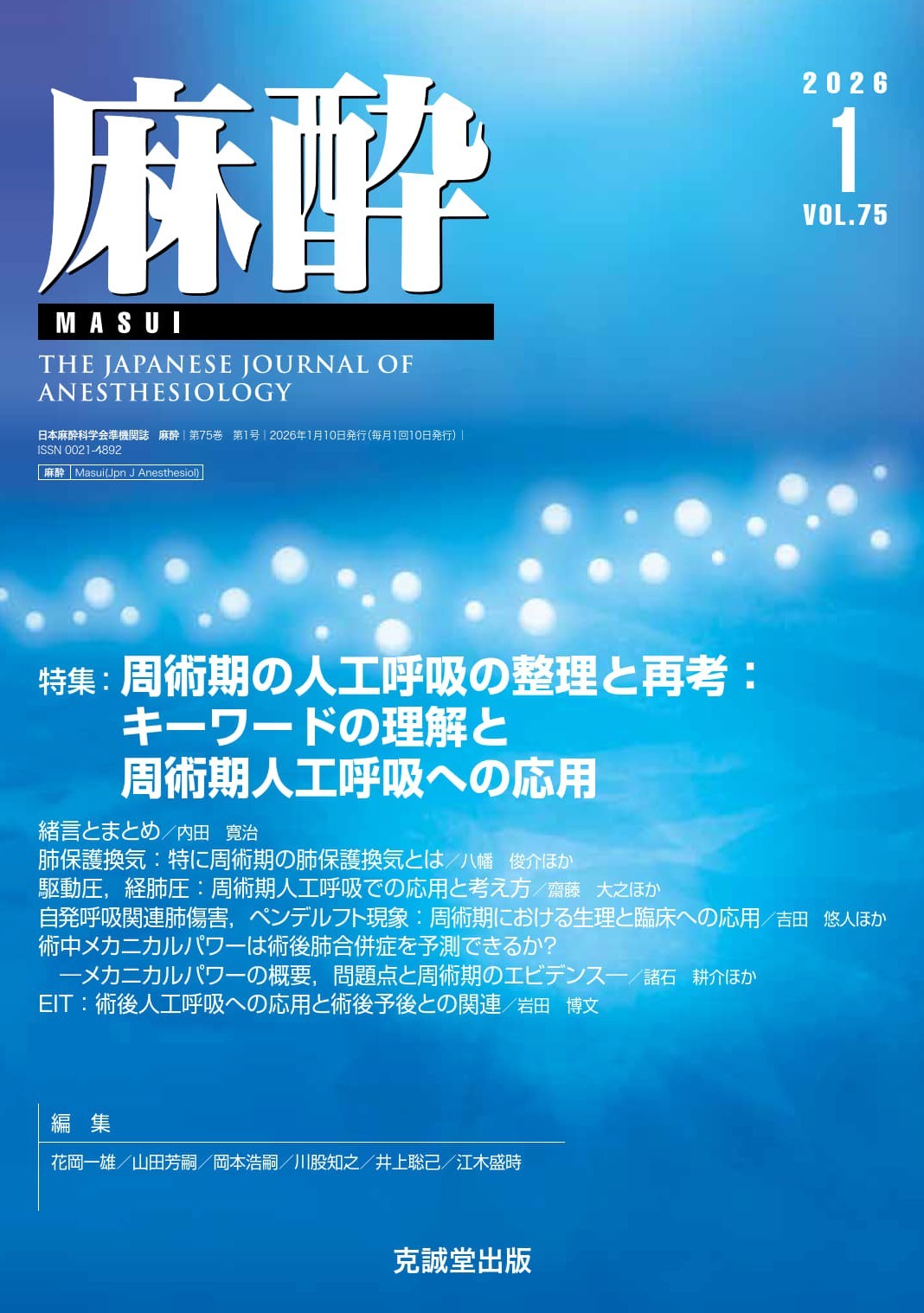 ARDS研究から発展した肺保護換気戦略と周術期人工呼吸の最前線を凝縮。肺保護換気の基本原理から駆動圧・経肺圧・メカニカルパワー、EITによる可視化まで、術後肺合併症を減らす最先端知見を一挙解説。肺保護換気の理論と実践をつなぐ、麻酔科医が“いま読むべき”知見をまとめた特集です。